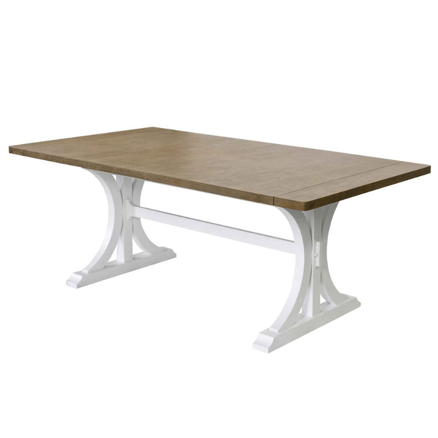 • Tawny brown finish with a white trestle base enhances the contemporary style
