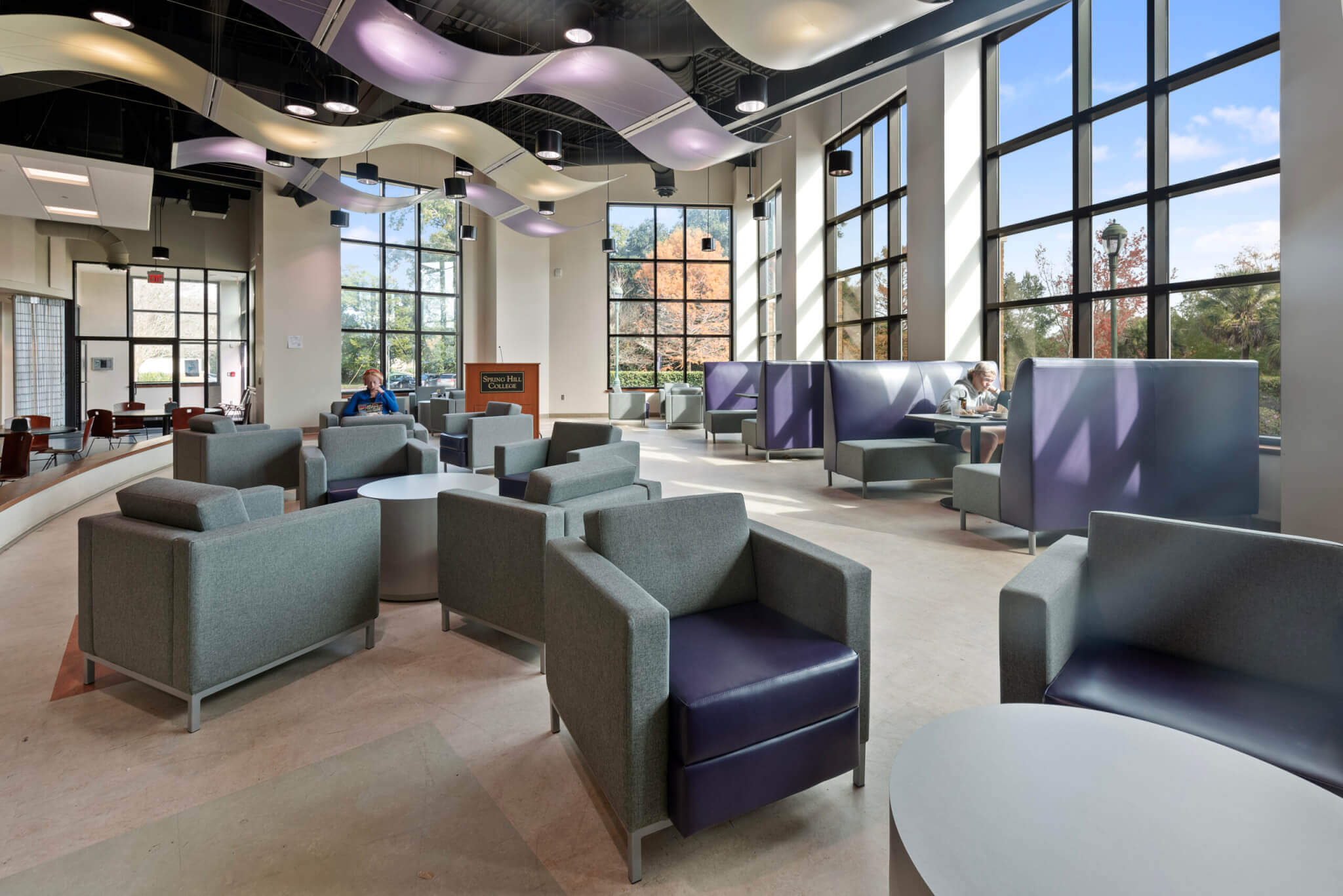 Our team was entrusted with furnishing this innovative space, selecting pieces that would enhance both the academic and practical learning environments. The majority of the furniture comes from Global Furniture Group, known for its durability and modern design. Other featured manufacturers are KI, Via Seating, 9to5 Seating, SitOnIt and Eko Contract.